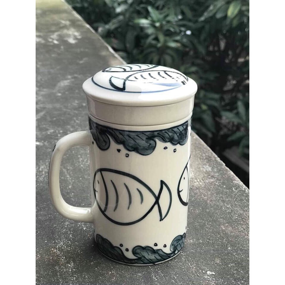 Cốc lọc trà gốm sứ Bát Tràng cao cấp - sản phẩm vẽ tay thủ công bởi những người thợ nổi tiếng Bát Tràng
