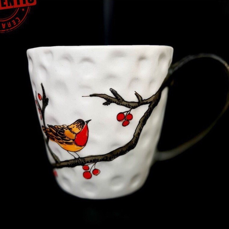 Bird painting ceramic cup made in authentic Bat Trang ceramic factory/ special gift