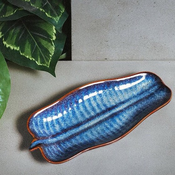 Khay, Dĩa lá chuối - 27*23cm men xanh hỏa biến đẳng cấp